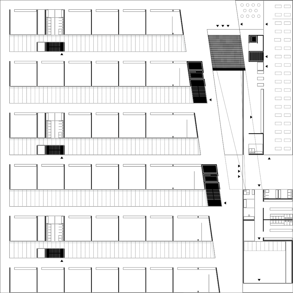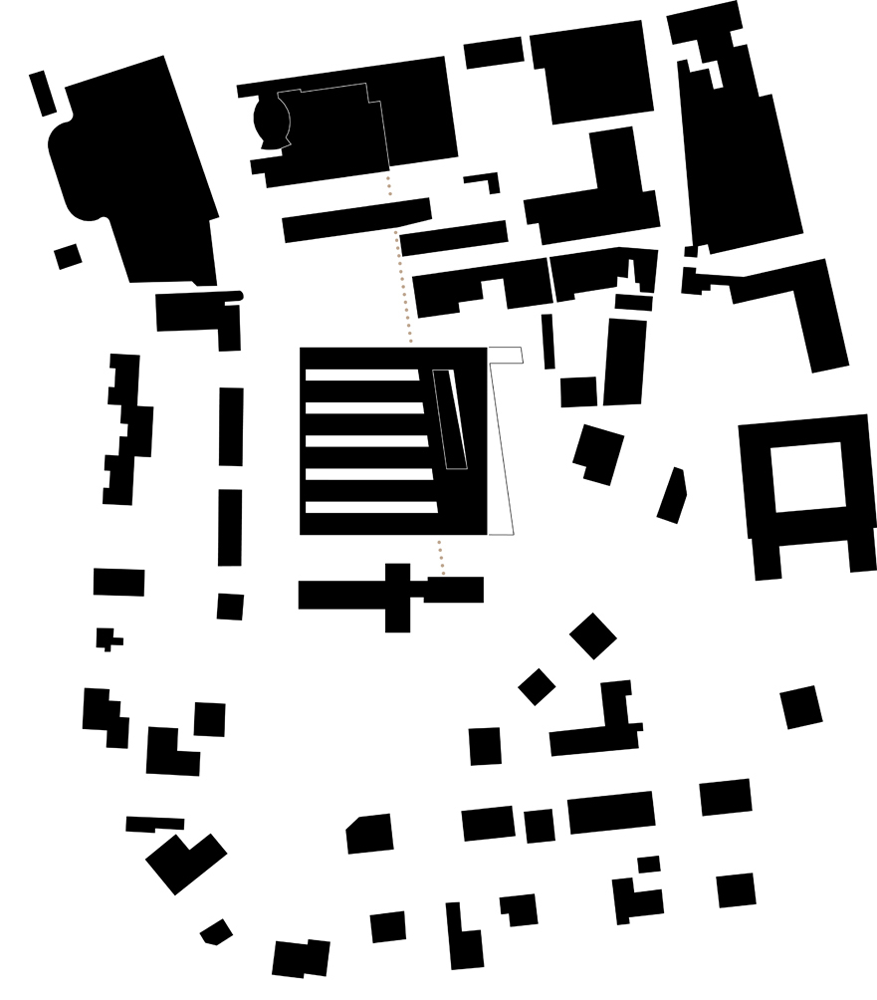 Der Neubau der Freien Universität Bozen in Brixen wird als kompaktes, dreigeschossiges Gebäude mit quadratischer Grundform und einer Kantenlänge von 84 Metern vorgeschlagen. Das Quadrat als die rechteckige Form mit der grössten Fläche bei gleichzeitig geringstem Umfang, erscheint uns nicht nur aus betrieblichen- und gebäudeenergetischen Gründen als die Geeignetste. Auf abstrakter Ebene symbolisiert es wie keine andere Figur das, was die Universität in Brixen darstellt: einen Punkt, den Anfang einer neuen Entwicklung. Das Dach des Gebäudes ist flach, die Proportionen sind liegend. Es ist dadurch dem, was in Brixen den räumlichen Eindruck am stärksten prägt, also den Bergen radikal unähnlich. Der sinnlichen Dominanz gefalteten Gesteins entgegnet es mit der kühlen Sachlichkeit eines Behälters des Geistes. Statt der Enge des Tals thematisiert es die Weite des Blicks.